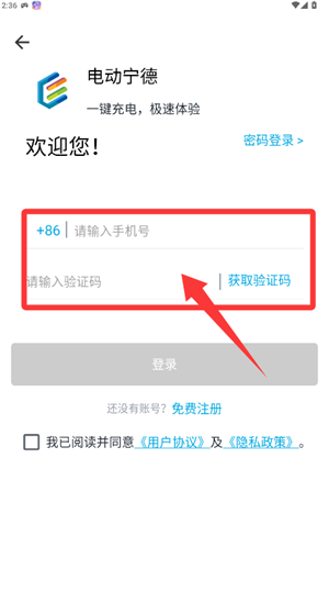 2、輸入手機號碼獲取驗證碼,勾選協(xié)議后點擊登錄進入。