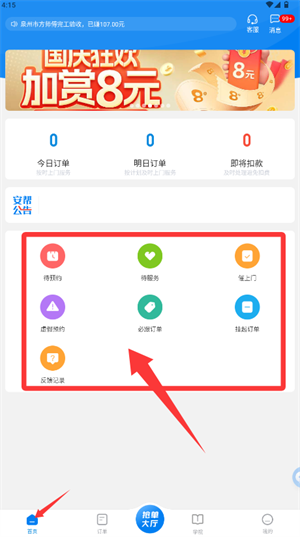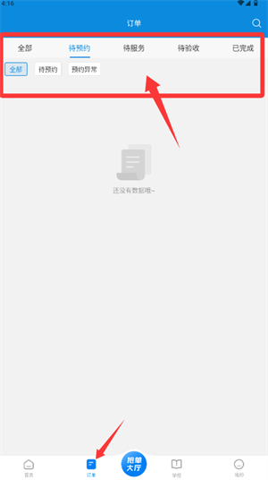 3、登錄成功后進(jìn)入首頁(yè),可見(jiàn)待預(yù)約、待服務(wù)等各類訂單功能入口。