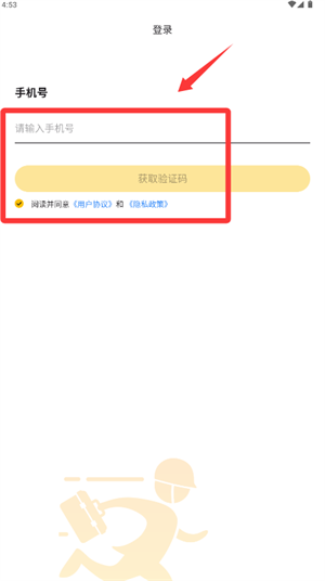 3、在登錄頁填寫您的手機號碼,獲取驗證碼并閱讀同意相關協(xié)議。
