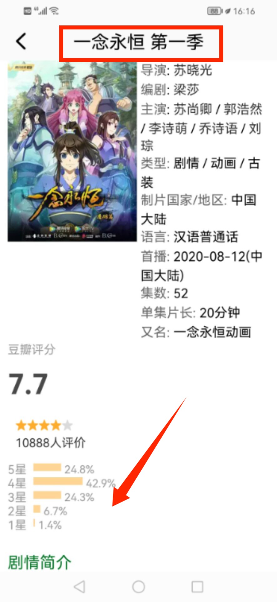 3、進(jìn)入該動畫詳情頁,可查閱制作團(tuán)隊、配音陣容、用戶評分等詳細(xì)信息。