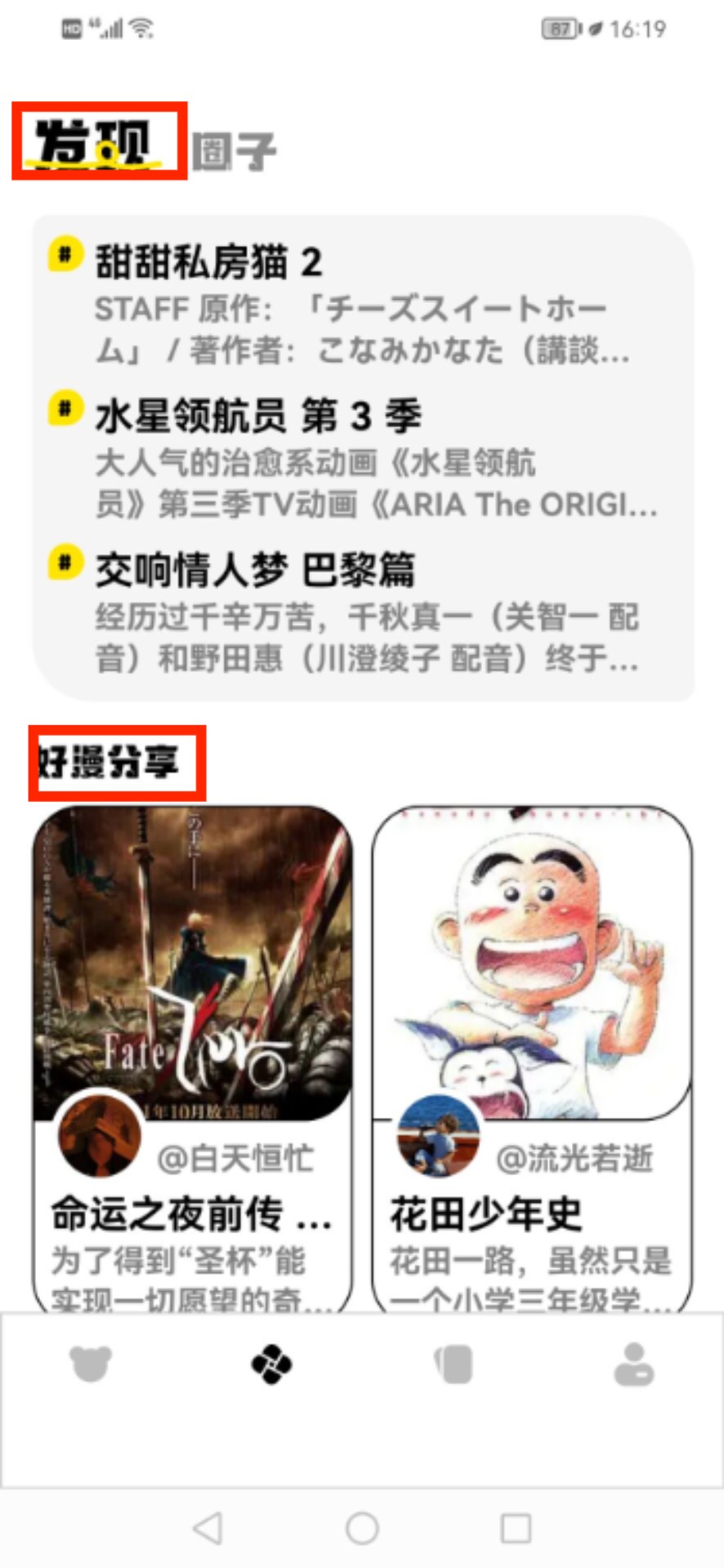 3、返回應用首頁進入發(fā)現(xiàn)頻道,在優(yōu)質推薦專區(qū)瀏覽其他精選動畫內容。