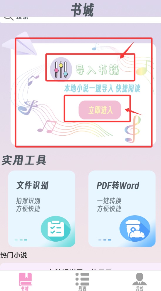 1、打開燃文小說閱讀器后,您可通過導(dǎo)入書籍功能加載本地電子書文件或直接下載站內(nèi)資源。
